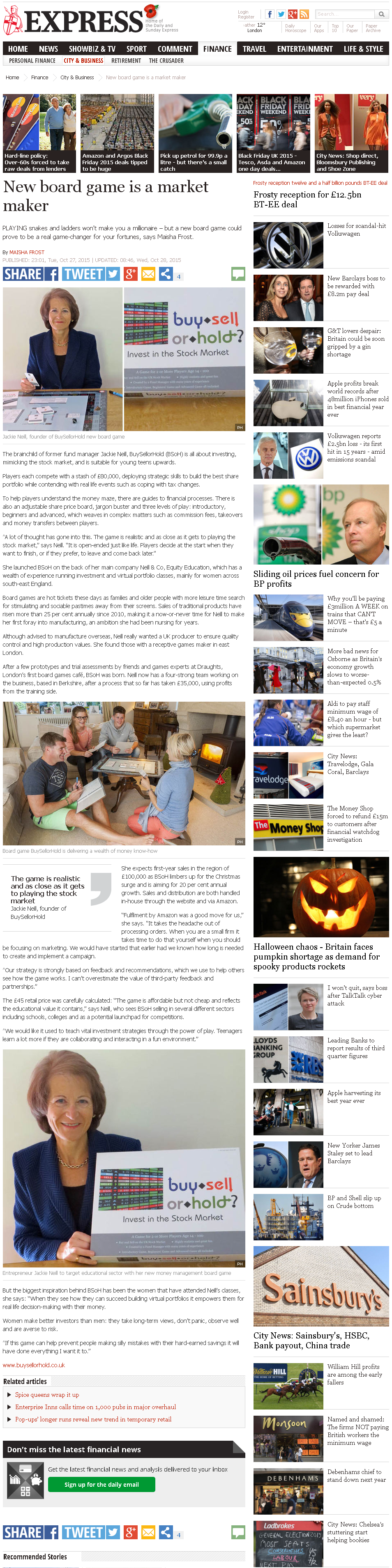 October 27th 2015: The Daily Express featured BuySellorHold? in their Finance section: 'New board game is a market maker'. Read the Express article online. [archive].