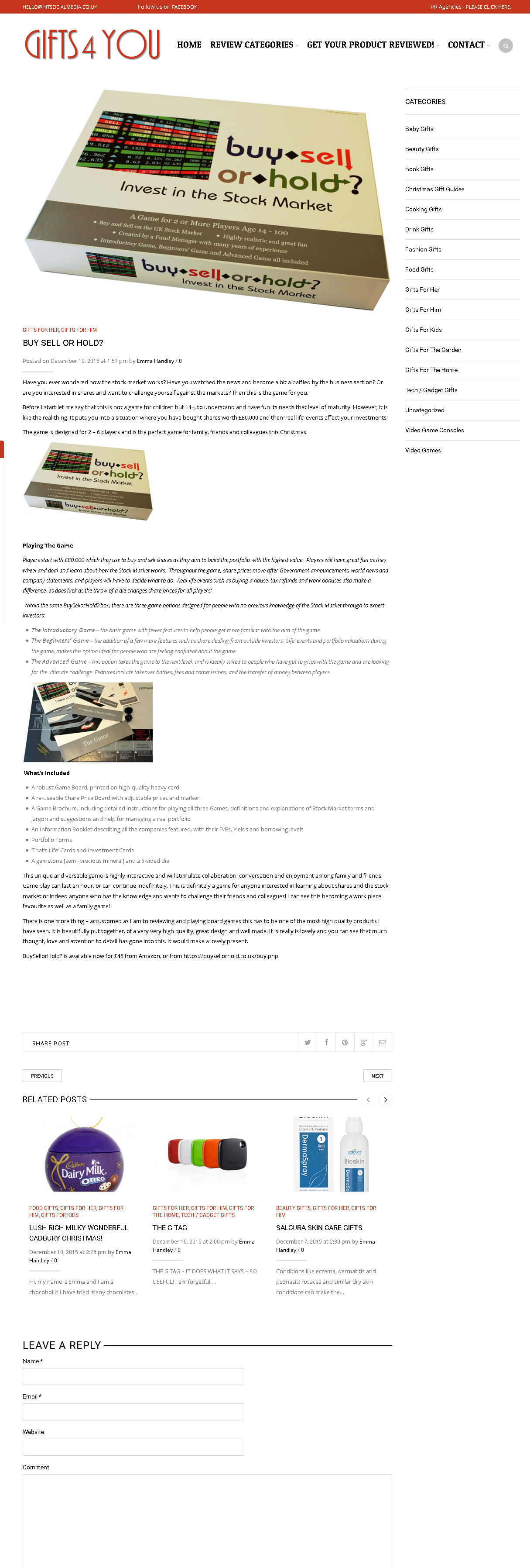 December 10th 2015: Gifts 4 You, The UK's Most Impartial UK Gift Review Guide, review BuySellorHold?: 'accustomed as I am to reviewing and playing board games, this has to be one of the most high quality