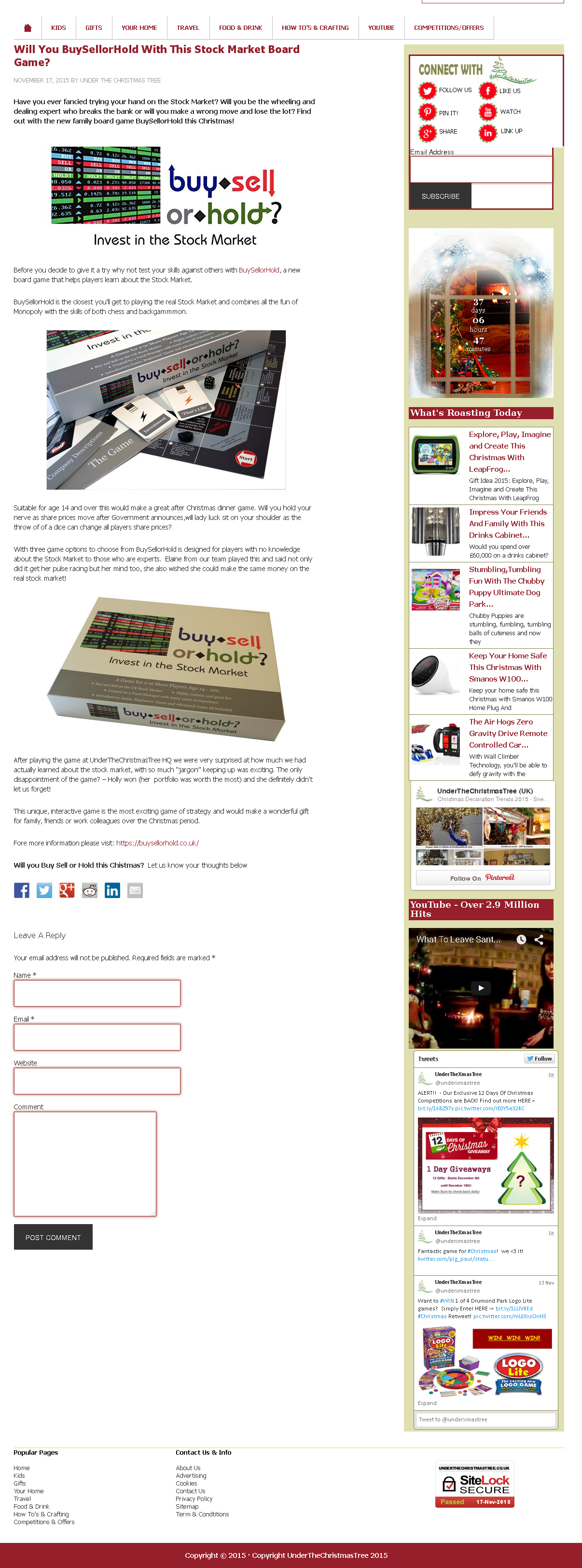 November 17th 2015: UnderTheChristmasTree, the UK's Biggest Christmas website, feature BuySellorHold?: 'Will You BuySellorHold With This Stock Market Board Game?'. Their review affirms that they 'were very surprised at how much we had actually learned about the stock market'. Visit UnderTheChristmasTree. [archive].